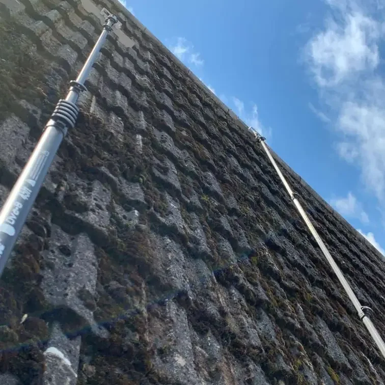 Moss and organic build‑up are carefully lifted away with specialist air tools — no harsh blasting.Soft Wash Application